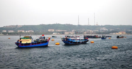 Âu cảng Bạch Long Vỹ như vòng tay khổng lồ, vững chắc vươn ra biển khơi để ôm trọn vào lòng và che chở hàng trăm con tàu cập cảng đảo sau chuyến đi biển dài ngày.