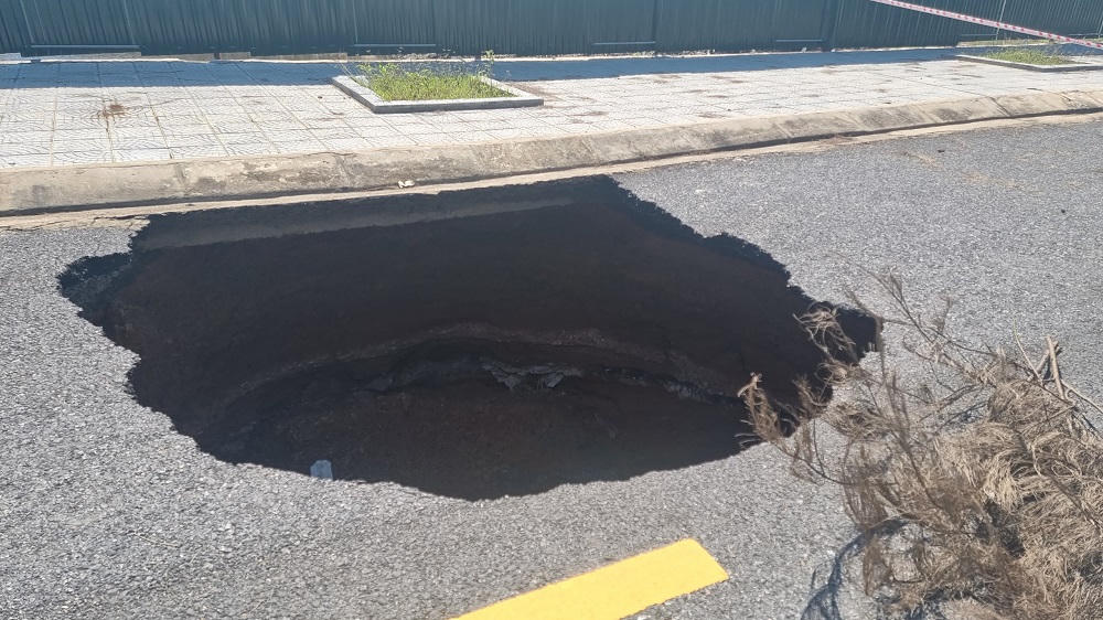 Hố sụt này có chiều dài khoảng 3 mét, rộng 2,5 mét, khá sâu và nguy hiểm. |