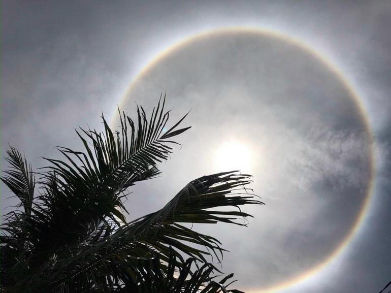 Trong tiết trời oi bức, nắng nóng, nhiều người dân tỉnh Khánh Hòa chứng kiến vầng hào quang xuất hiện gần 2 giờ.