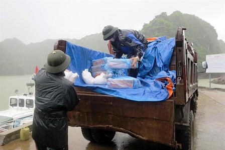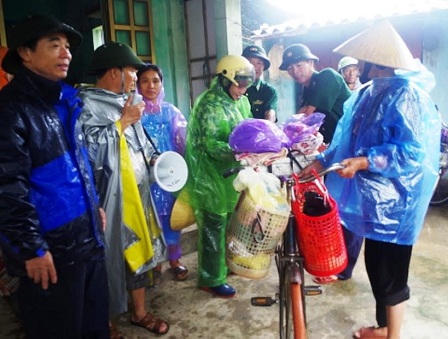 Các cán bộ, chiến sĩ đã dầm mình trong mưa lũ giúp dân chống bão, gọi, cứu kéo tàu thuyền vào nơi neo đậu an toàn.