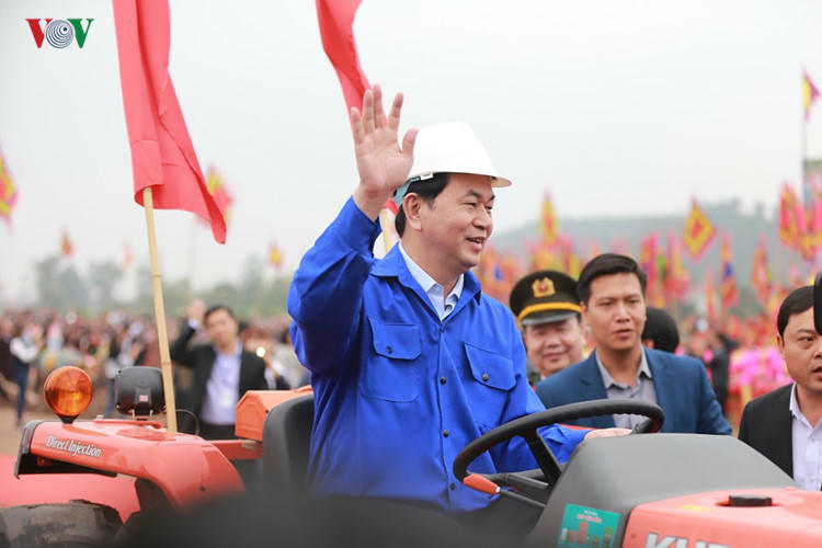 Về dự và thực hiện nghi lễ cày tịch điền tại cánh đồng xã Đọi Sơn (huyện Duy Tiên, tỉnh Hà Nam), sáng nay, 3/2, Chủ tịch nước Trần Đại Quang cùng lãnh đạo địa phương đã sử dụng máy cày chuyên dụng để thực hiện nghi thức xuống đồng, với hy vọng mưa thuận gió hòa, mùa màng bội thu, nhà nhà no đủ, đất nước phồn thịnh...