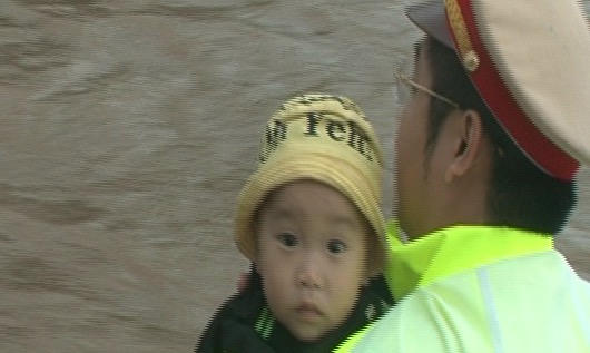 Xúc động cảnh CSGT dầm mưa lũ giúp người dân Thừa Thiên - Huế