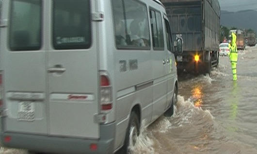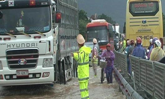 Trên tuyến QL1A địa qua địa bàn huyện Phú Lộc có nơi ngập sâu đến nửa mét khiến cho hàng loạt phương tiện đi lại khó khăn, nguy cơ ùn tắc nếu như không có sự điều tiết kịp thời của lực lượng CSGT.