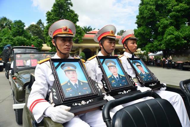 Sáng nay, lễ tang ba phi công trên trực thăng EC-130T2 hy sinh trong khi làm nhiệm vụ diễn ra tại Nhà tang lễ Bộ Quốc phòng (TP HCM). Đông đảo người thân, đồng đội và người dân... đến tiễn biệt các anh.