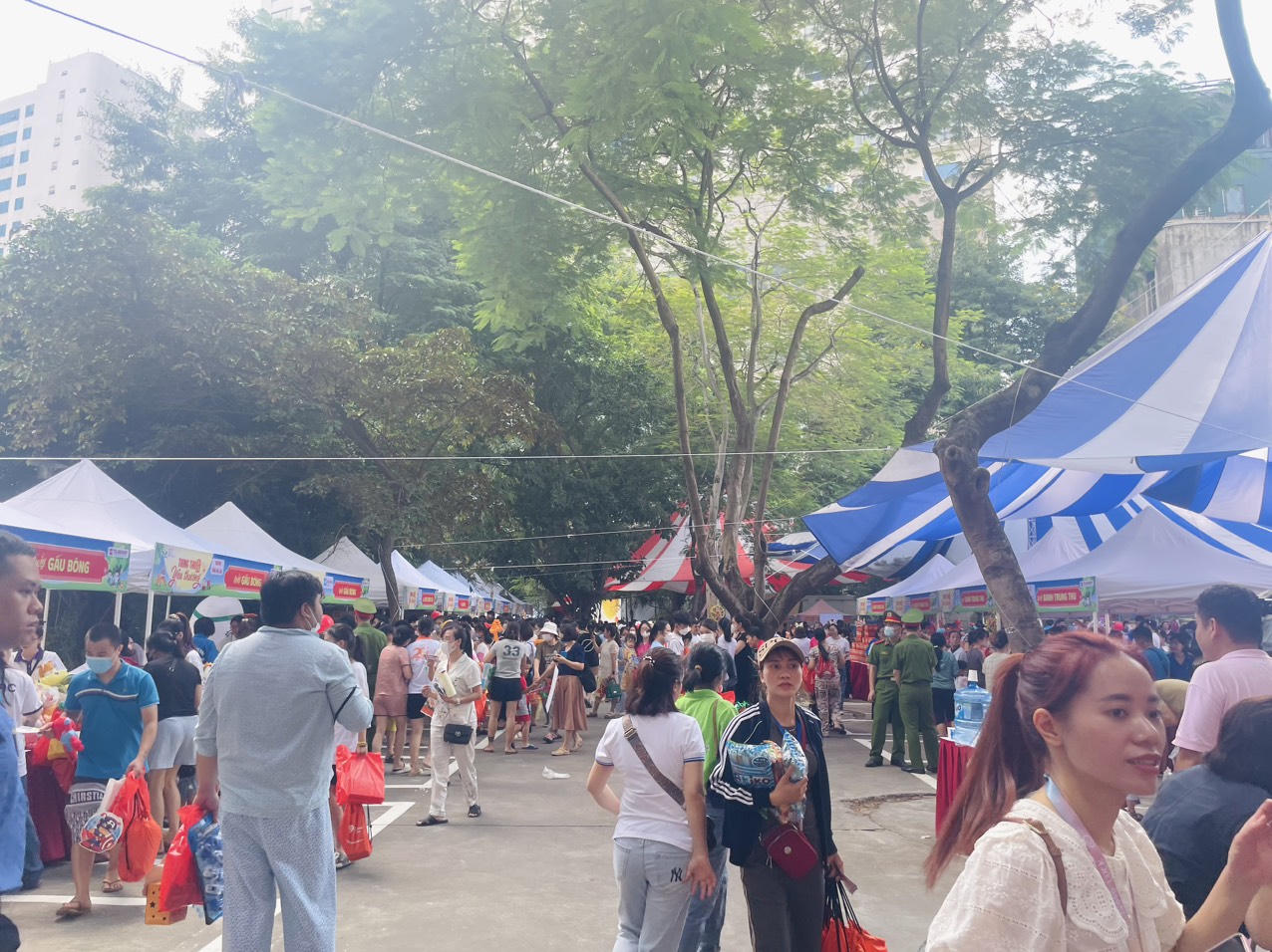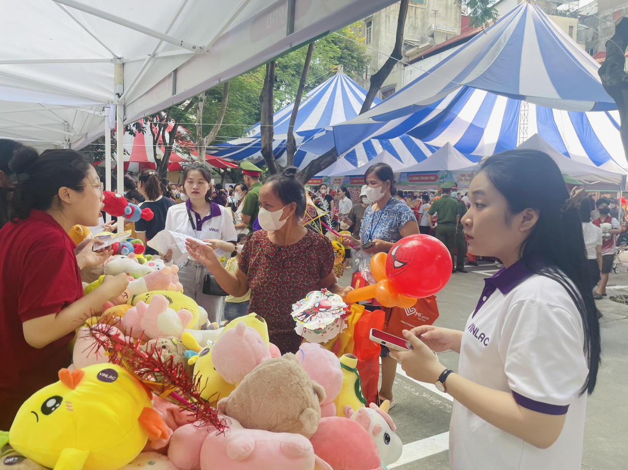 Hàng chục gian hàng với nhiều phần quà ý nghĩa dành cho bệnh nhi. |