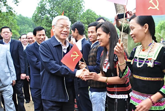 | Tổng Bí thư trong lần đến thăm và làm việc với xã Hồng Hạ, huyện miền núi A Lưới. |