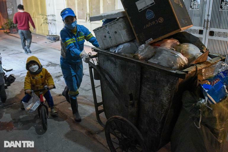 Trong con ngõ trên đường Kim Mã, quận Ba Đình, Hà Nội, người dân thường xuyên bắt gặp hình ảnh nữ công nhân vừa miệt mài đẩy xe rác nặng trịch, cao quá đầu, vừa để mắt đến cậu con trai đang đi chiếc xe thăng bằng bên cạnh.