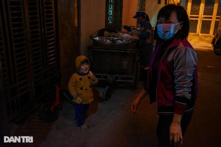 "Thấy Thóc đi làm theo mẹ, người dân trong ngõ thương, tặng cho con gói bánh. Hôm nay trời lạnh lắm, rét căm căm mà cực chẳng đã, tôi phải mang con theo. Thương con đến quặn lòng", chị Lan rưng rưng chia sẻ.