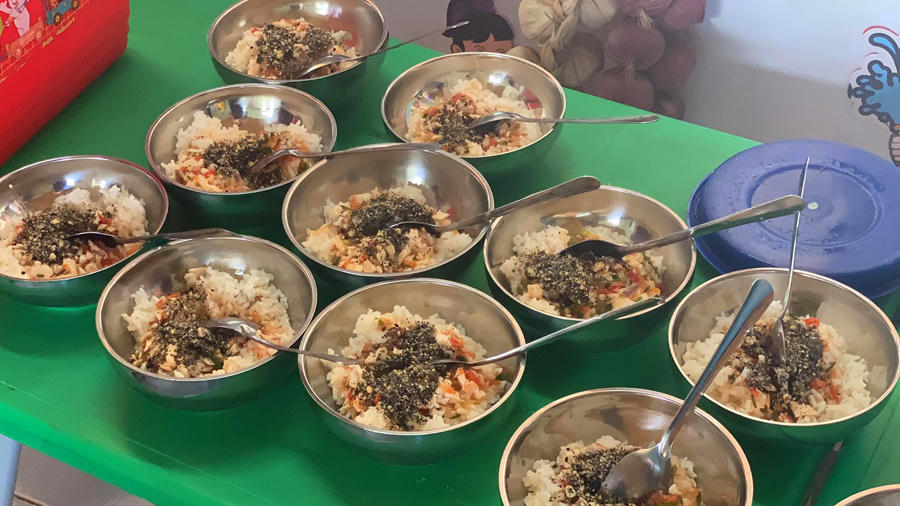 Tại Lâm Hóa, học sinh mầm non ở các điểm đều ăn bán trú, một bữa chính và một bữa phụ. Tuy nhiên, vì điều kiện cơ sở vật chất thiếu thốn, các điểm trường phụ không thể tự nấu ăn cho trẻ. Việc vận chuyển cơm buổi trưa đến cháo buổi chiều từ điểm trường chính về các điểm trường phụ được các giáo viên của mỗi điểm trường đảm nhận. Hàng ngày, giáo viên phải vượt rừng gần 10km đưa cơm cho các em.