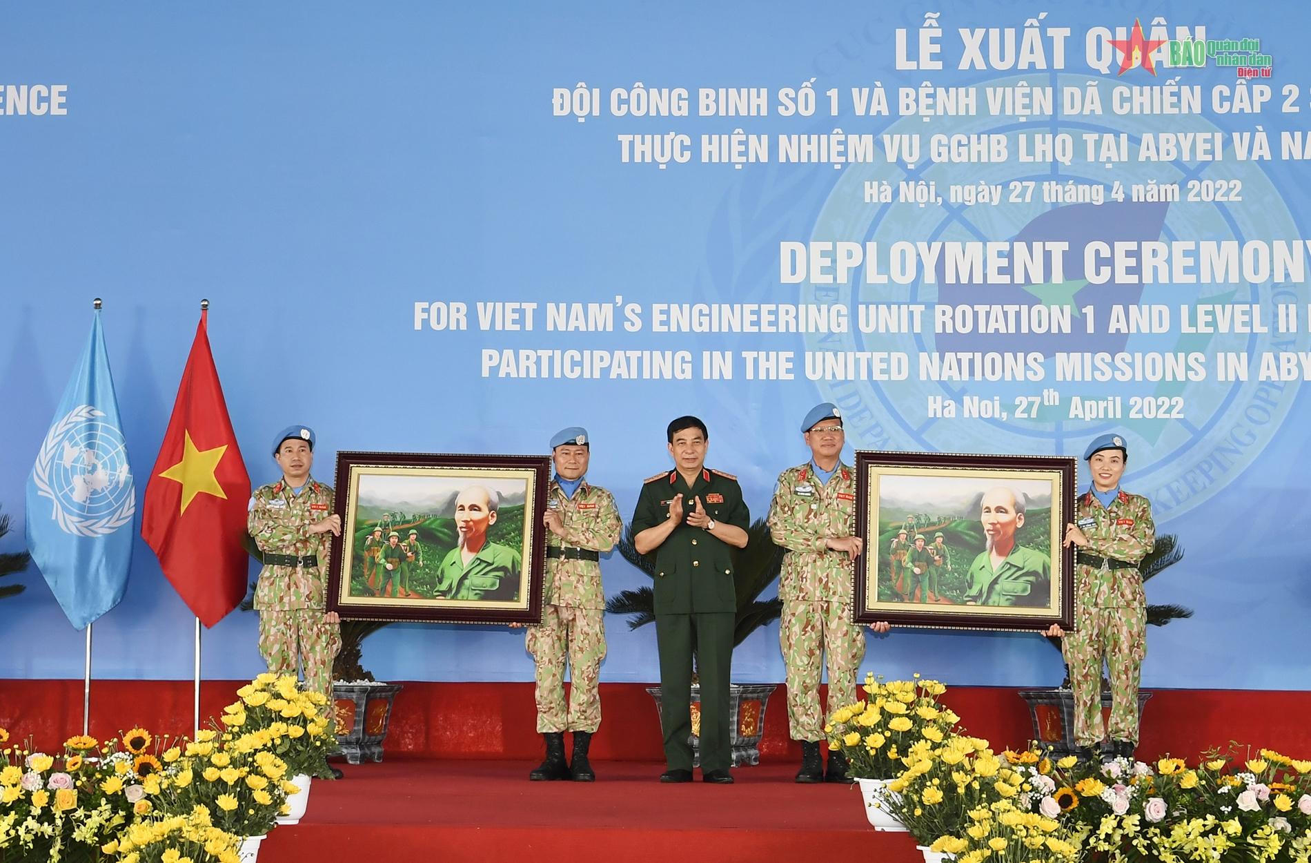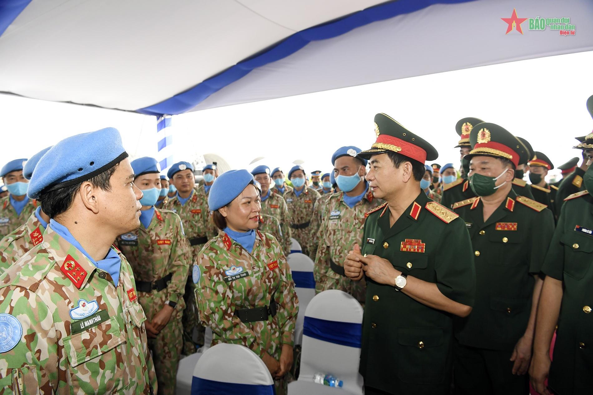 Qua những cái bắt tay thật chặt, những lời động viên gần gũi, Chủ tịch nước Nguyễn Xuân Phúc, Đại tướng Phan Văn Giang cùng các đại biểu đều mong muốn các chiến sĩ mũ nồi xanh sẽ phát huy phẩm chất tốt đẹp Bộ đội Cụ Hồ, thực hiện tốt vai trò “đại sứ” của hòa bình và tình hữu nghị, góp phần nâng cao uy tín, vị thế quốc tế của đất nước và Quân đội nhân dân Việt Nam anh hùng.