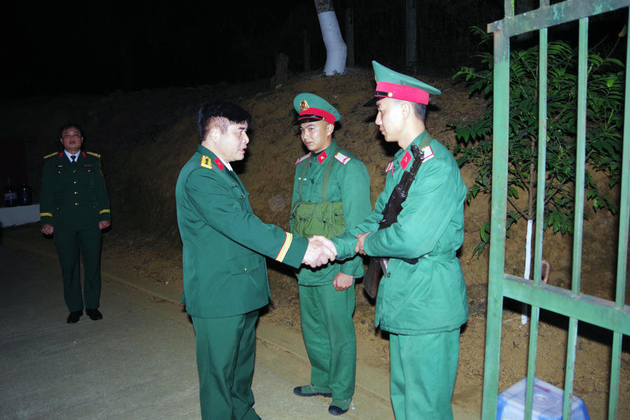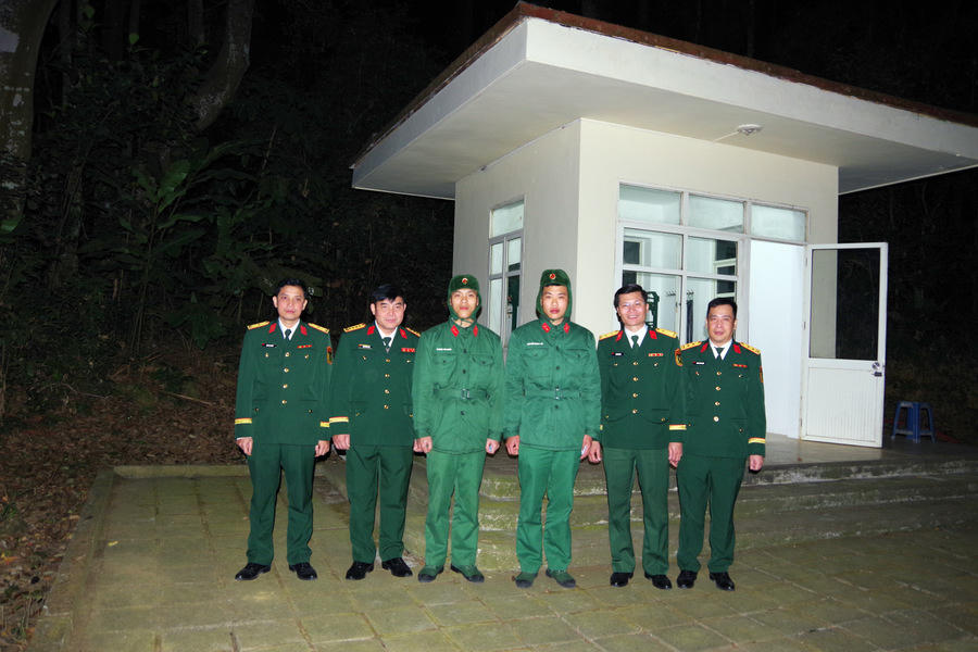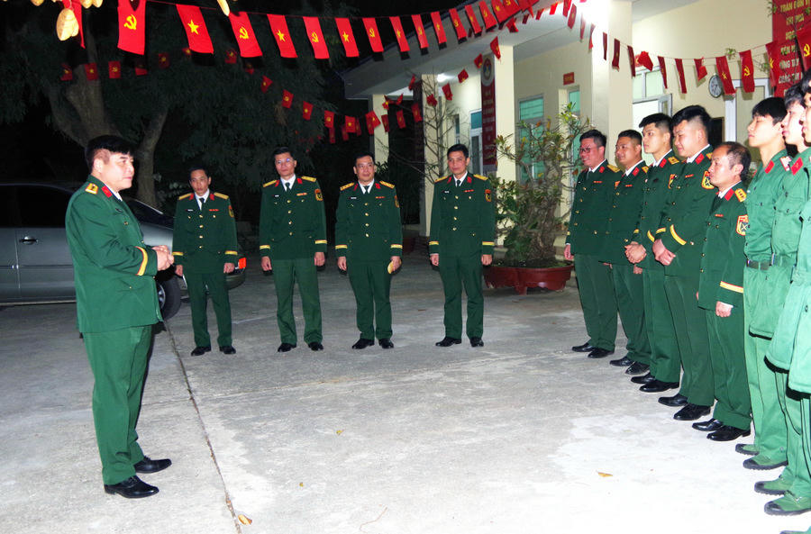 Đêm Giao thừa, chỉ huy Đoàn thăm, chúc mừng năm mới các cán bộ, nhân viên, chiến sĩ Đội Quản lý rừng.