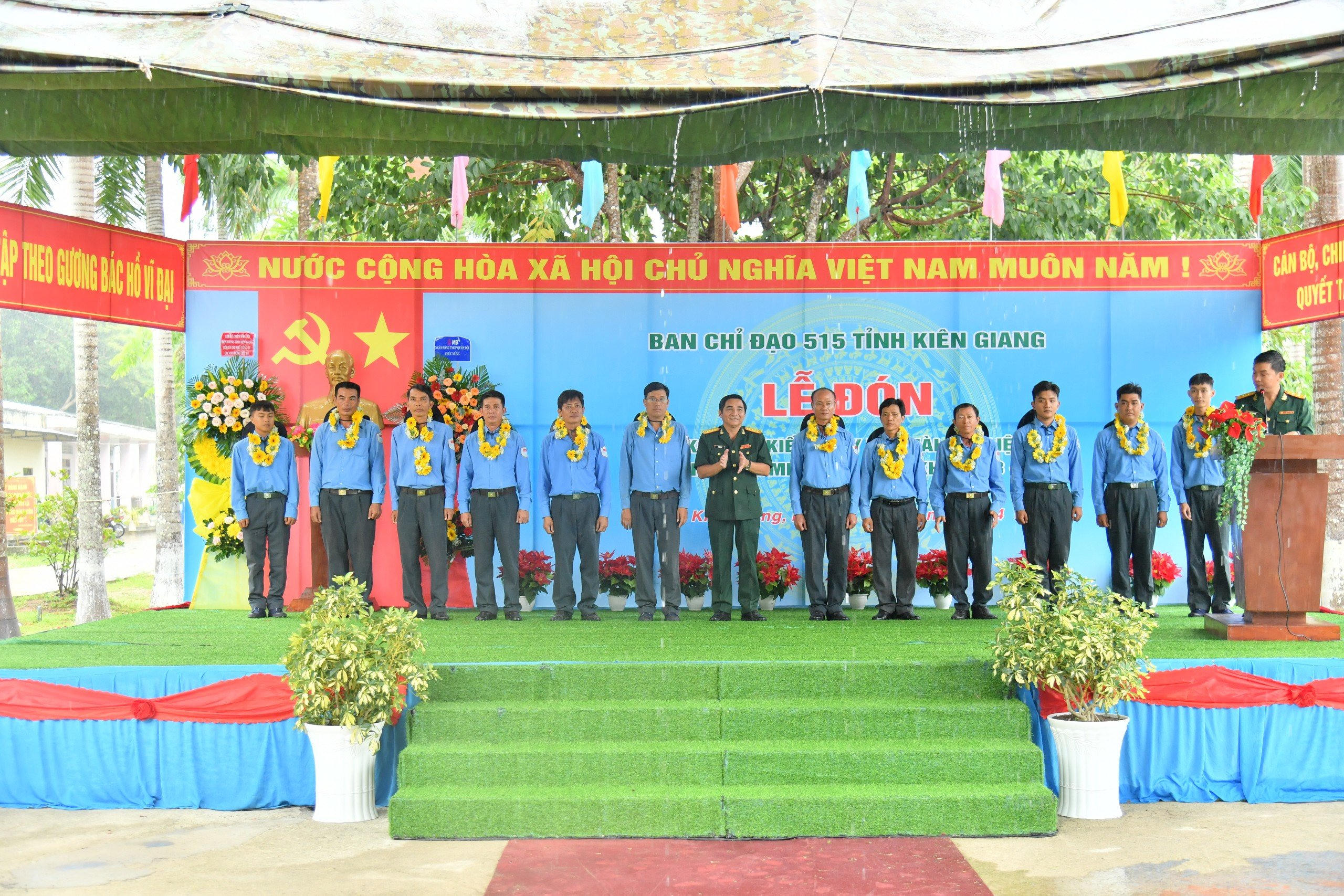 (PLVN) - Ngày 4/7, tại Cửa khẩu quốc tế Hà Tiên (TP Hà Tiên, tỉnh Kiên Giang), Ban Chỉ đạo tìm kiếm, quy tập và xác định danh tính hài cốt liệt sĩ (Ban Chỉ đạo 515) tỉnh Kiên Giang tổ chức Lễ đón hài cốt liệt sĩ và Đội K92 - Bộ Chỉ huy quân sự (CHQS) tỉnh Kiên Giang về nước, kết thúc nhiệm vụ tìm kiếm, quy tập hài cốt liệt sĩ tại Campuchia giai đoạn XXIII (mùa khô 2023-2024).