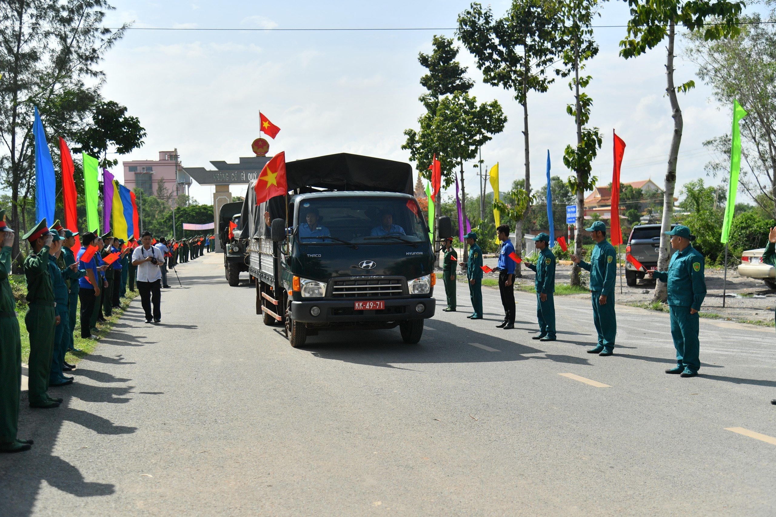 Tại lễ đón trang trọng và đầy xúc động, hàng trăm cán bộ, chiến sĩ lực lượng vũ trang, cán bộ, đoàn viên thanh niên địa phương, các cháu thiếu nhi và người dân đã chào đón đoàn xe của Ban Chuyên trách tỉnh và Đội K92 cùng 27 hài cốt các liệt sĩ hy sinh trên đất bạn Campuchia được tìm thấy trong giai đoạn mùa khô 2023-2024.