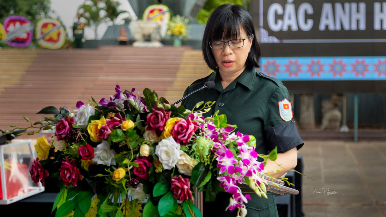 Bà Nguyễn Thị Thanh Lịch, Phó Chủ tịch UBND tỉnh Gia Lai, trưởng ban chuyên trách tỉnh đọc điếu văn truy điệu. |