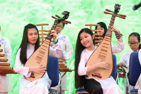 Lễ khai giảng tại Vinschool diễn ra ngắn gọn và trang trọng nhưng thực sự là một ngày hội để các học sinh thể hiện tài năng của mình. Làn điệu dân ca Bắc bộ “Đi cấy” đã được học sinh Trung học Vinschool mở đầu bằng dàn nhạc cụ âm nhạc truyền thống với đàn bầu, đàn tỳ bà, sáo trúc, đàn tơ-rưng, cồng chiêng, klongput… và kết thúc bằng phối khí với các nhạc cụ âm nhạc phương Tây như piano, violon, xylophone, metalophone… tạo nên thông điệp hội nhập đầy cảm xúc.