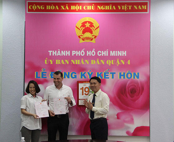 Chú rể mừng hết cỡ trong Lễ Trao giấy chứng nhận kết hôn của UBND quận 4, tp Hồ Chí Minh