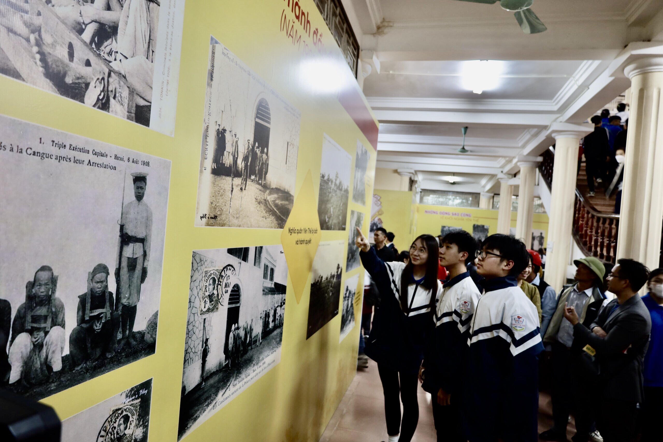 Các em học sinh tự hào khi xem lại những hình ảnh lịch sử dân tộc. |