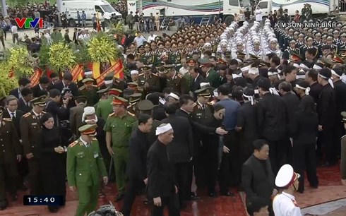 Lễ an táng cố Chủ tịch nước vào 15h30 hôm nay, tại xóm 13, xã Quang Thiện, huyện Kim Sơn, tỉnh Ninh Bình, quê hương Chủ tịch nước. Quyền Chủ tịch nước Đặng Thị Ngọc Thịnh, Phó Thủ tướng Thường trực Trương Hoà Bình và các lãnh đạo cấp cao có mặt trước khu vực đặt ban thờ.