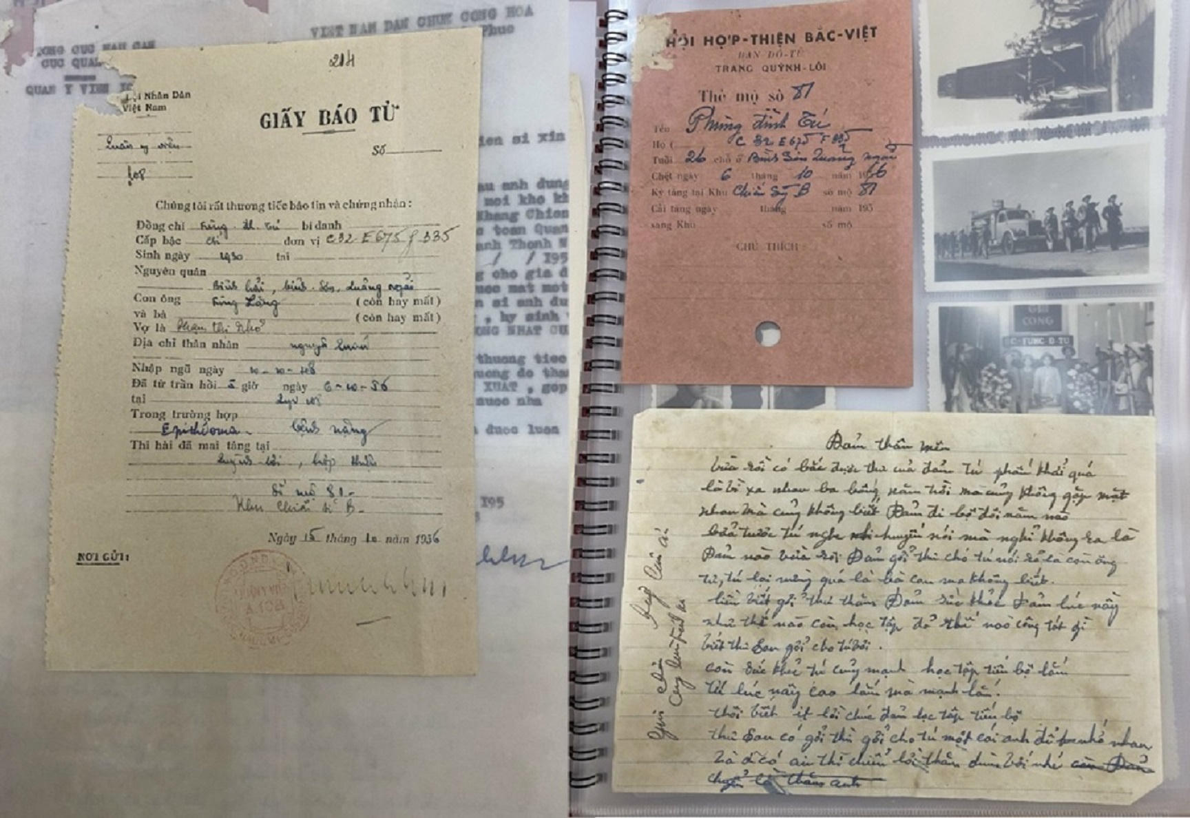 Đại tá Hoàng Tuấn Hiền, Phó Cục trưởng Cục Chính sách (Tổng cục Chính trị, Quân đội nhân dân Việt Nam) cho biết, các di vật, kỷ vật của liệt sĩ được bàn giao bao gồm giấy báo tử, sổ tay, ảnh cá nhân, giấy chứng minh, giấy chứng nhận thành tích, kỷ niệm chương kháng chiến, giấy khen, thư cá nhân… được các liệt sĩ gửi lại. Một số cuốn sổ tay chưa kịp ghi dòng nào ngoài cái tên chủ nhân cuốn sổ...
