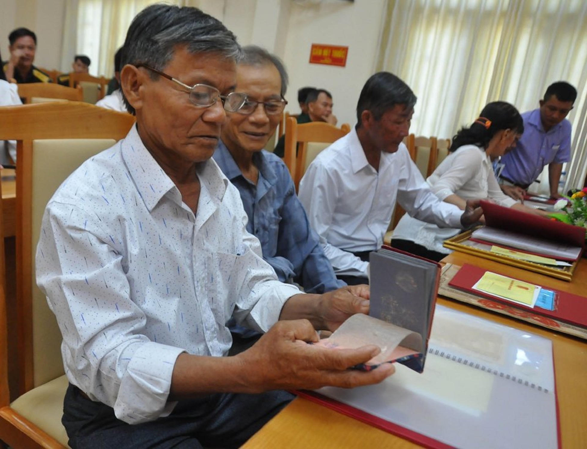 Thân nhân xem lại kỷ vật một thời của liệt sĩ sau hơn 70 năm được cất giữ. |