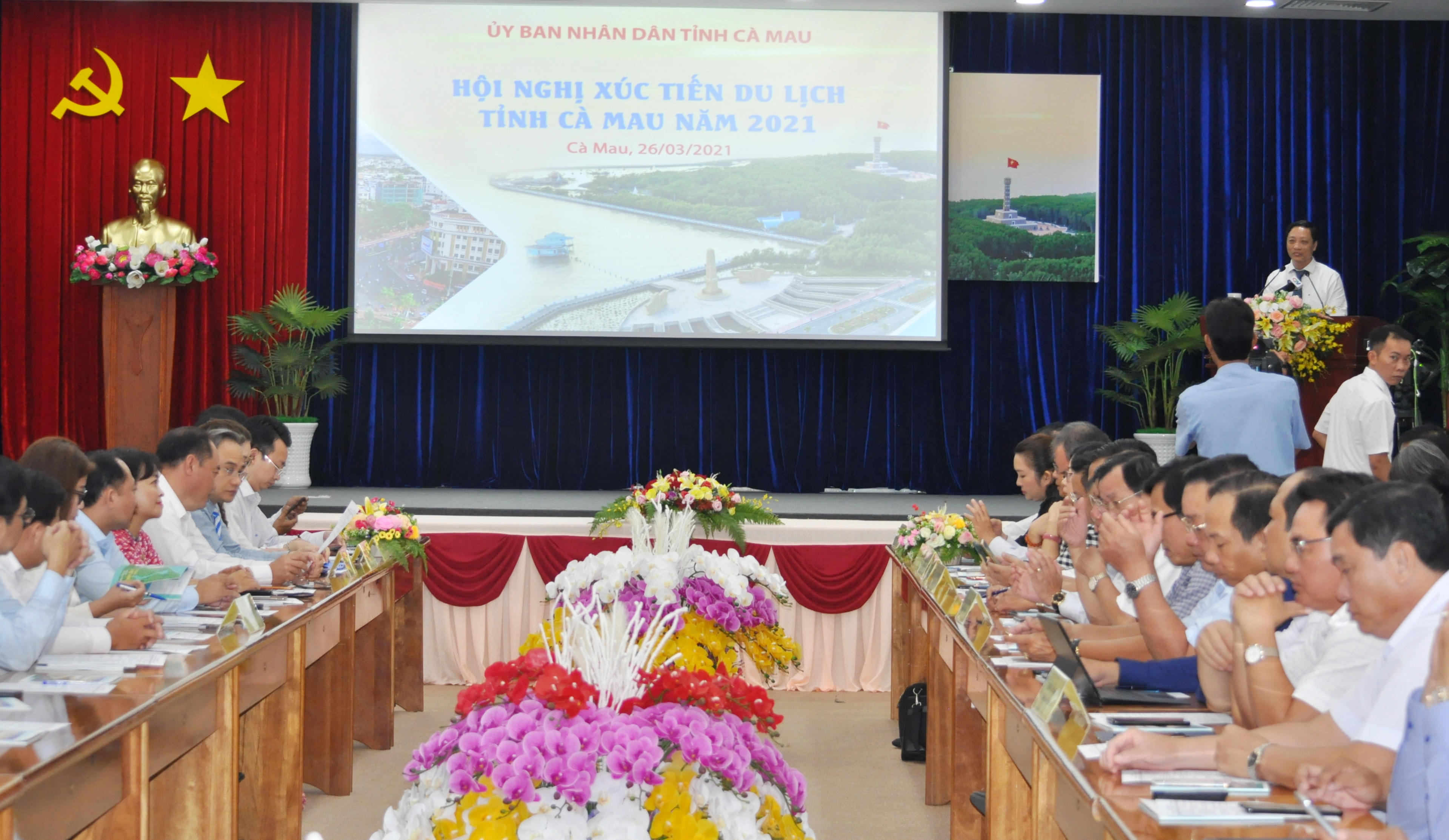| Hội nghị xúc tiến du lịch năm 2021 và lễ ra mắt “Cổng thông tin Du lịch thông minh” của tỉnh Cà Mau. |