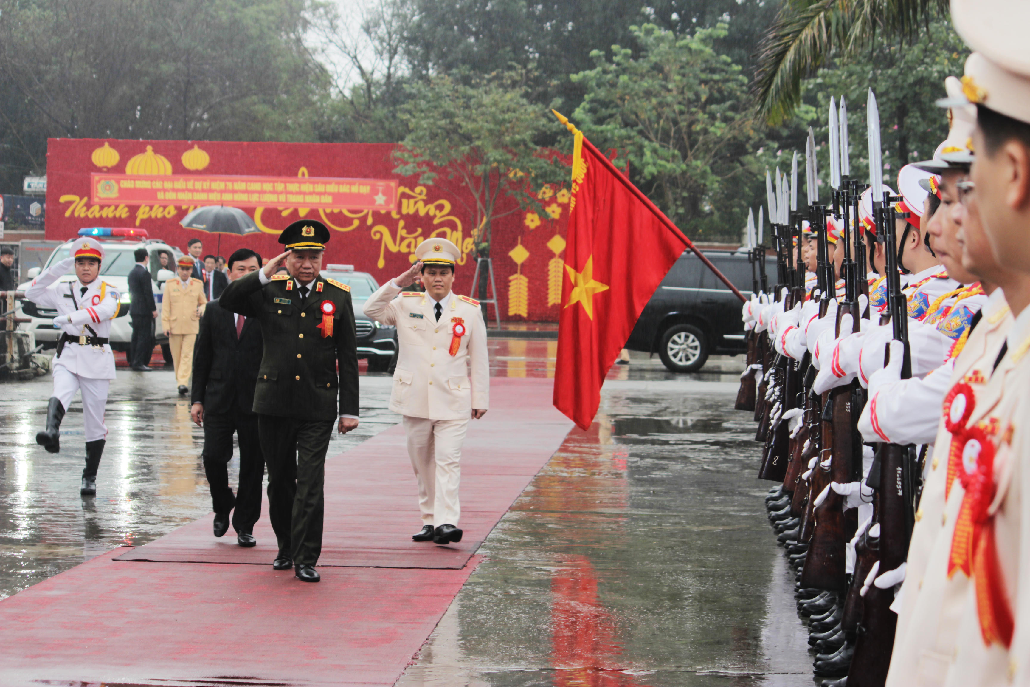 Đại tướng Tô Lâm - Bộ trưởng Bộ Công an tham dự lễ đón nhận danh hiệu Anh hùng Lực lượng vũ trang Nhân dân của Công an tỉnh Nghệ An. |