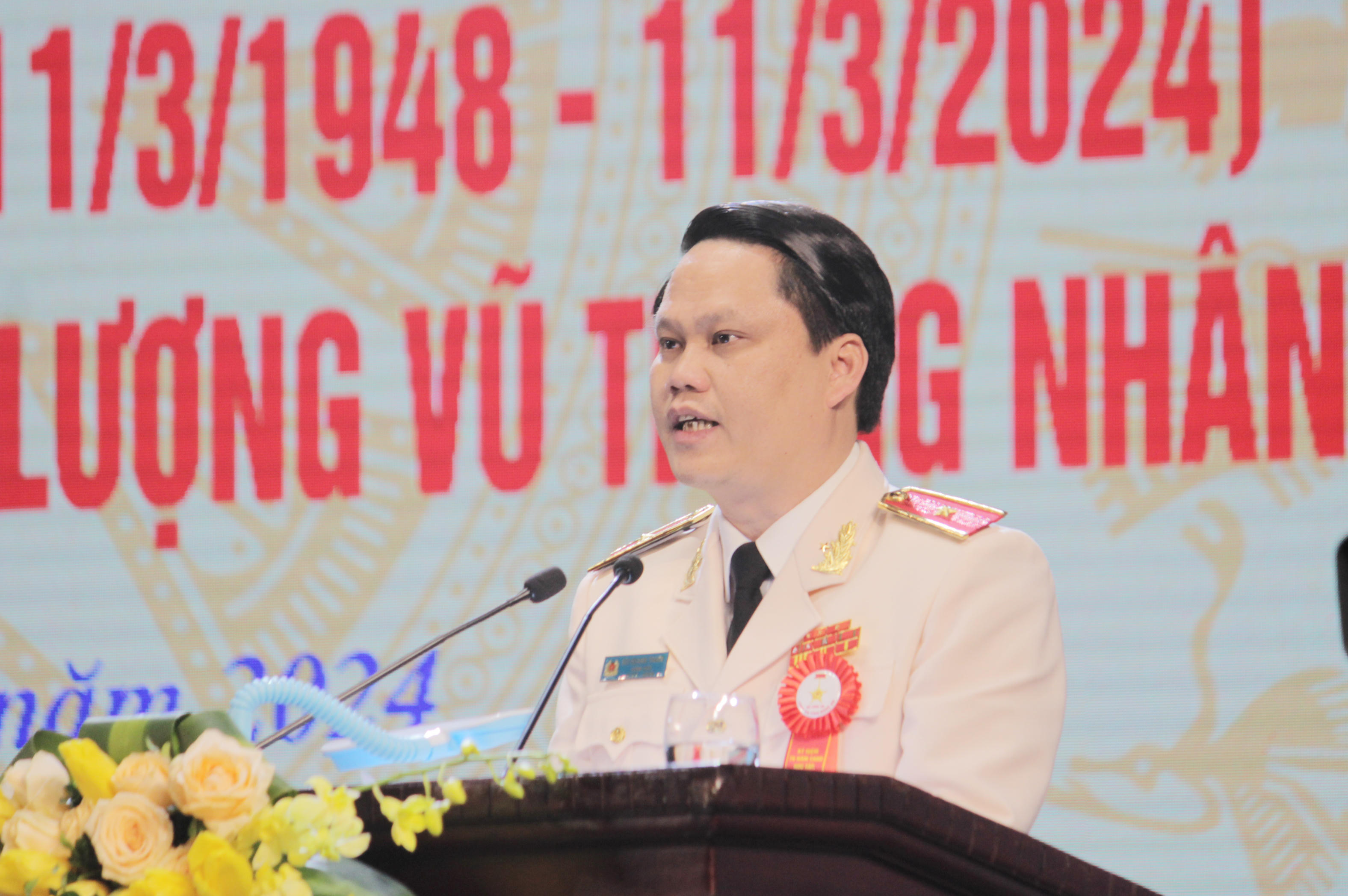 Tại buổi lễ, Thiếu tướng Bùi Quang Thanh - Giám đốc Công an tỉnh Nghệ An trình bày diễn văn ôn lại truyền thống vẻ vang, chặng đường lịch sử 76 năm Công an nhân dân (CAND) học tập, thực hiện Sáu điều Bác Hồ dạy và chặng đường 79 năm xây dựng, chiến đấu và trưởng thành của Công an Nghệ An.