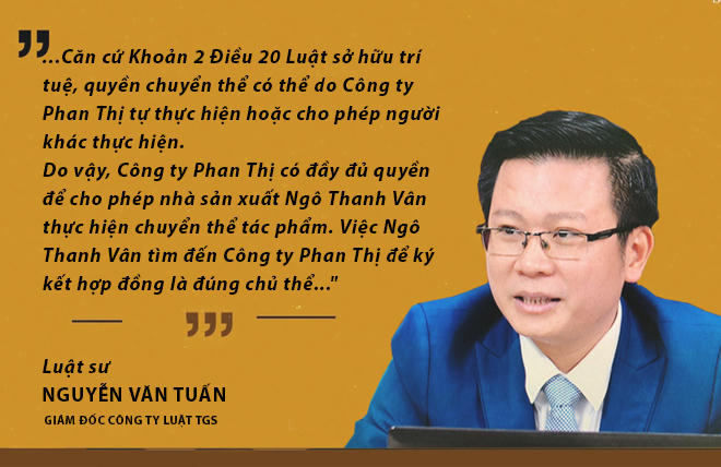 Đối với vụ việc này, Luật sư Nguyễn Văn Tuấn – Giám đốc Công ty Luật TNHH TGS (Đoàn Luật sư TP Hà Nội) nêu quan điểm: Nhà sản xuất Ngô Thanh Vân mua bản quyền từ Công ty Phan Thị là đúng với quy định pháp luật về sở hữu trí tuệ.