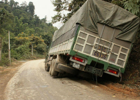 “Lái xe trên tuyến đường này không khéo là lao xuống vực như chơi. Đường thì chỉ đủ cho một xe đi, nếu gặp xe đối diện thì tránh nhau rất khó, tránh không chọn đúng chỗ thì coi như bị sa lầy, ách tắc cả vài ngày trời chờ xe khác lên sang hàng. Tiếng là quốc lộ nối với cửa khẩu quốc tế nhưng hỏng hết rồi” – tài xế tên Hiểu ngán ngẩm.