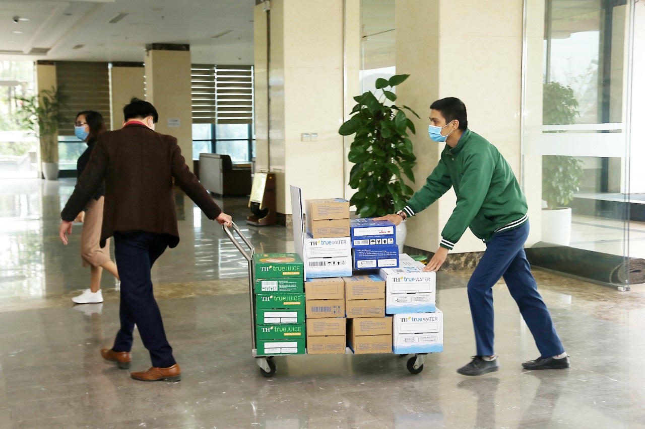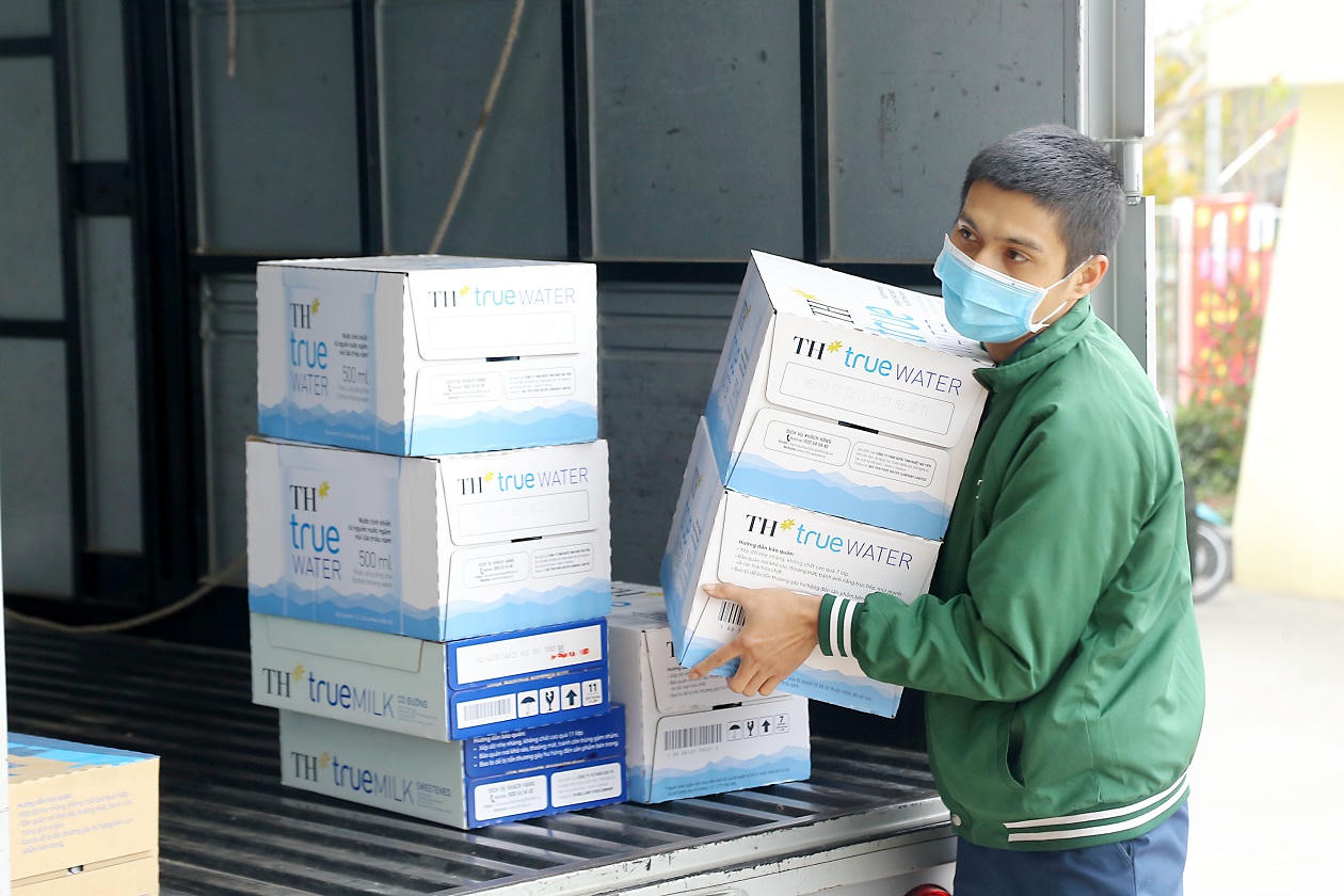 Số sản phẩm này nằm trong chương trình tặng hơn 200.000 ly sữa tươi và nước trái cây hỗ trợ các vùng tâm dịch, do Tập đoàn TH và BAC A BANK thực hiện. Hai đơn vị tài trợ đã nhanh chóng hoàn thiện công tác vận chuyển toàn bộ số lượng sản phẩm theo dự kiến trong thời gian nhanh nhất.