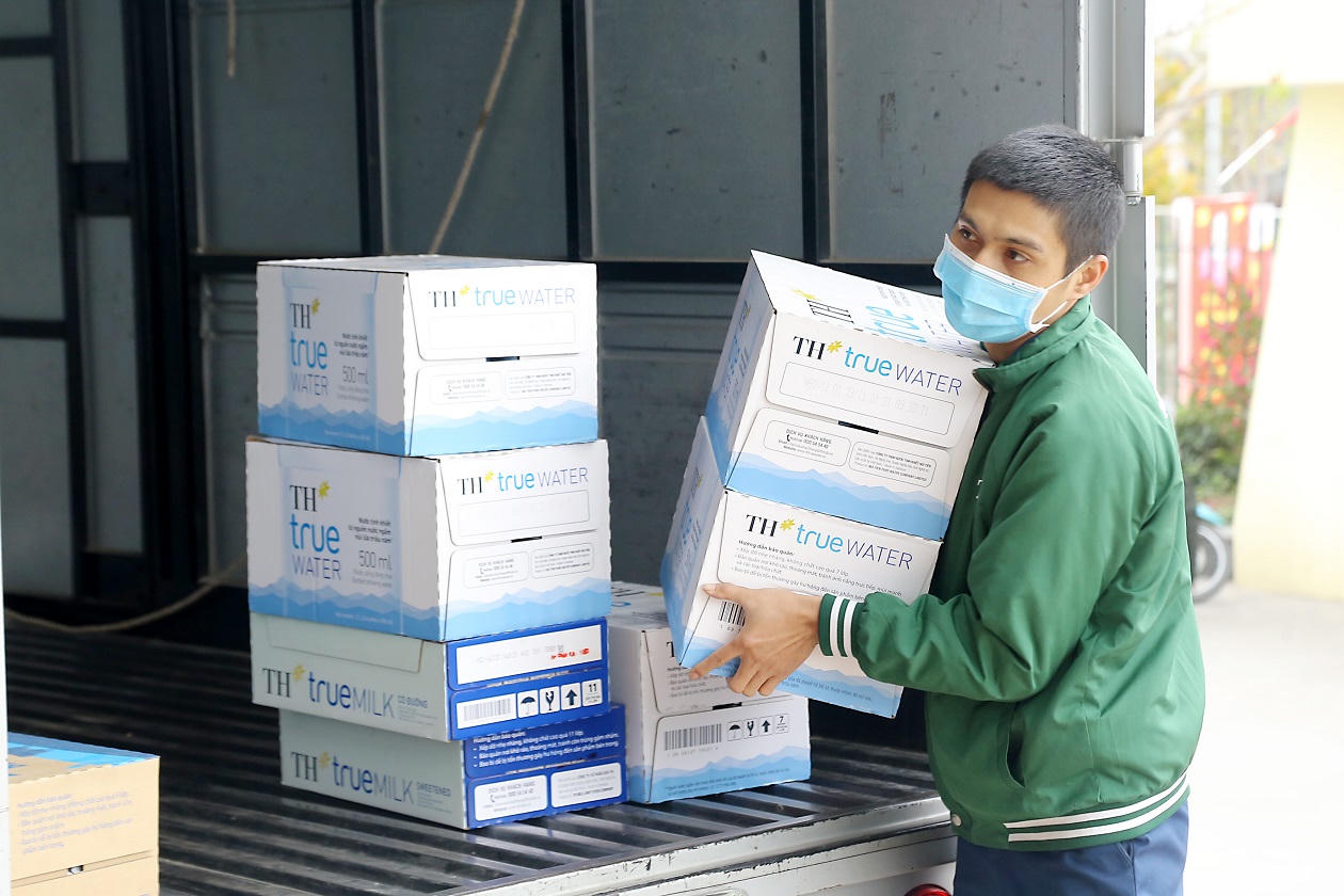 Ngay trong đêm, đoàn tình nguyện viên của Mặt trận Tổ quốc thành phố đã đưa 5 chuyến xe chuyên dụng chở các sản phẩm sữa và đồ uống tốt cho sức khỏe của TH tới các điểm tiếp tế. Tất cả các tình nguyện viên được trang bị bảo hộ y tế đúng quy định. Toàn bộ sản phẩm sữa tươi tiệt trùng Dalatmilk và nước trái cây tự nhiên TH true JUICE được khử khuẩn đúng quy trình trước và sau khi được giao. Mọi công đoạn trao tặng sản phẩm TH tại thành phố Chí Linh hoàn thành một cách nhanh chóng.