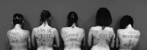Bức ảnh các nữ y tá khỏa thân với dòng chữ "Chúng tôi có cần khỏa thân để bạn chú ý đến không?" trên lưng. Ảnh:Hôpital de Pontoise. |
