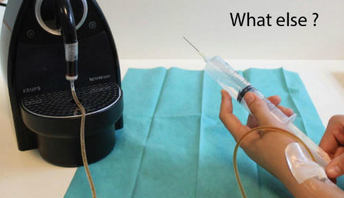 Bức ảnh nữ y tá đang truyền cà phê vì quá mệt mỏi. Ảnh:Hôpital de Pontoise. |