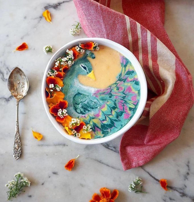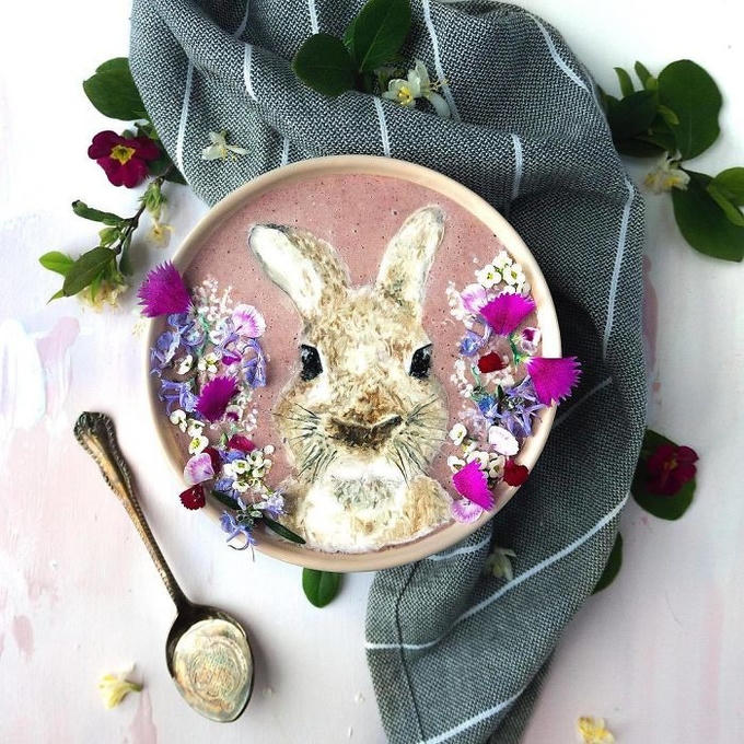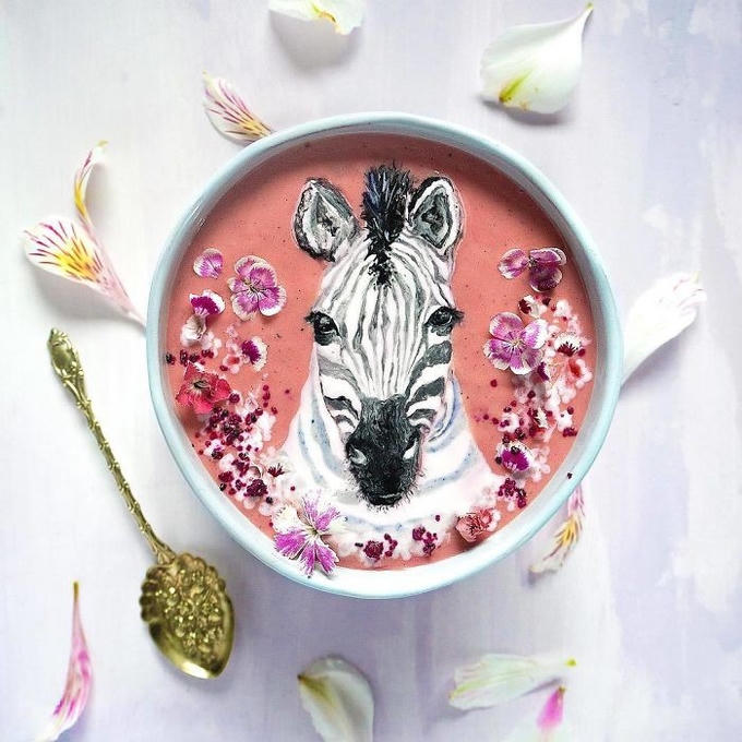 Với tình yêu dành cho đồ ăn và hội họa, nữ nghệ sĩ đã kết hợp chúng lại để pha chế ra vô số cốc sinh tố với bề mặt như những bức tranh tuyệt đẹp.