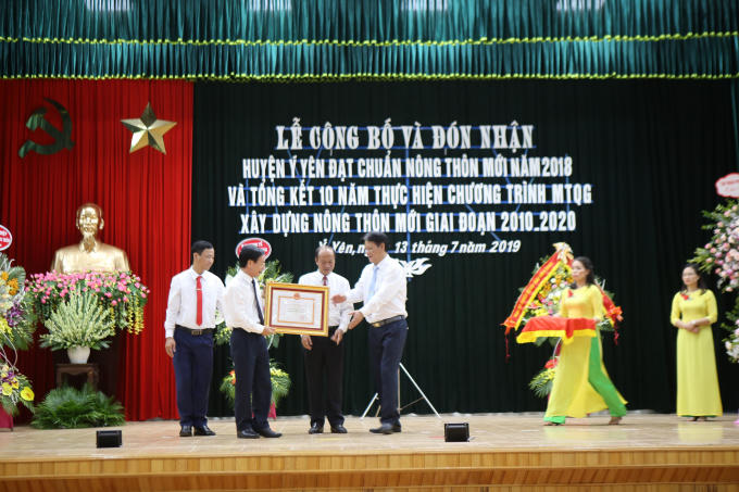 Với những thành tựu đã đạt được trong phong trào xây dựng nông thôn mới. Ngày 13/7/2019 Cấp Ủy đảng, Chính quyền và nhân dân huyện Ý Yên đã vinh dự được Thủ tướng chính phủ trao bằng chứng nhận huyện đạt chuẩn nông thôn mới.