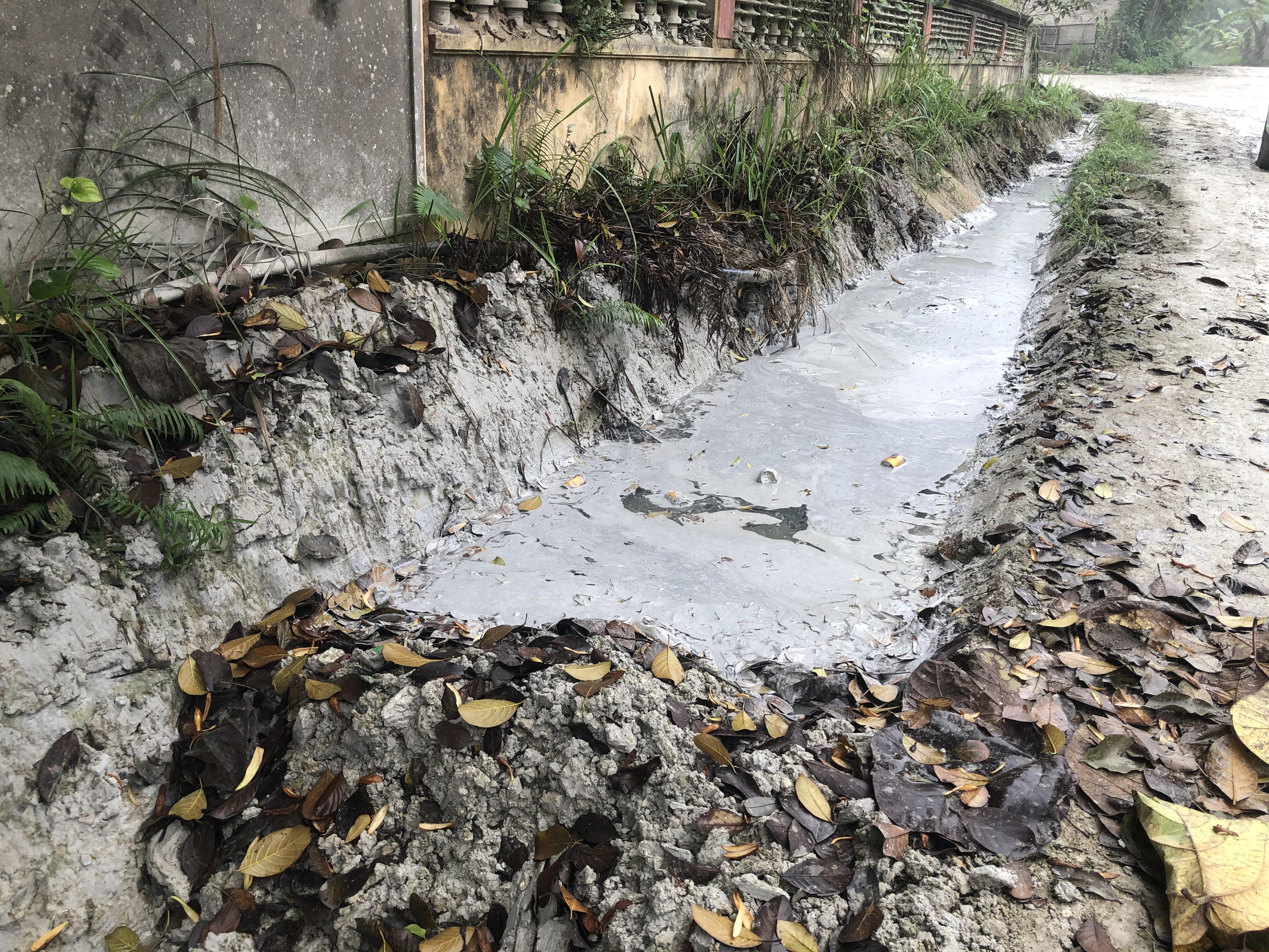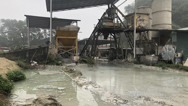 Ngày mưa nước thải đầy tràn chảy trực tiếp ra đường thoát nước của Cụm công nghiệp. Nghiêm trọng hơn, sau quá trình sản xuất bê tông thương phẩm, một khối lượng rất lớn chất thải bê tông hay còn gọi là bã bê tông được xếp vào loại chất thải nguy hại lại không được xử lý, đổ thải bừa bãi ra môi trường, có nguy cơ ô nhiễm nghiêm trọng đến các khu vực lân cận