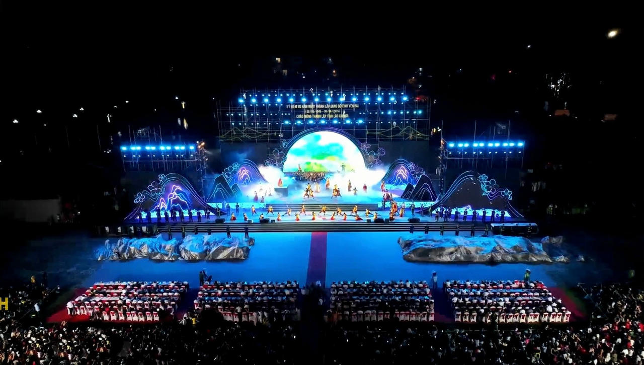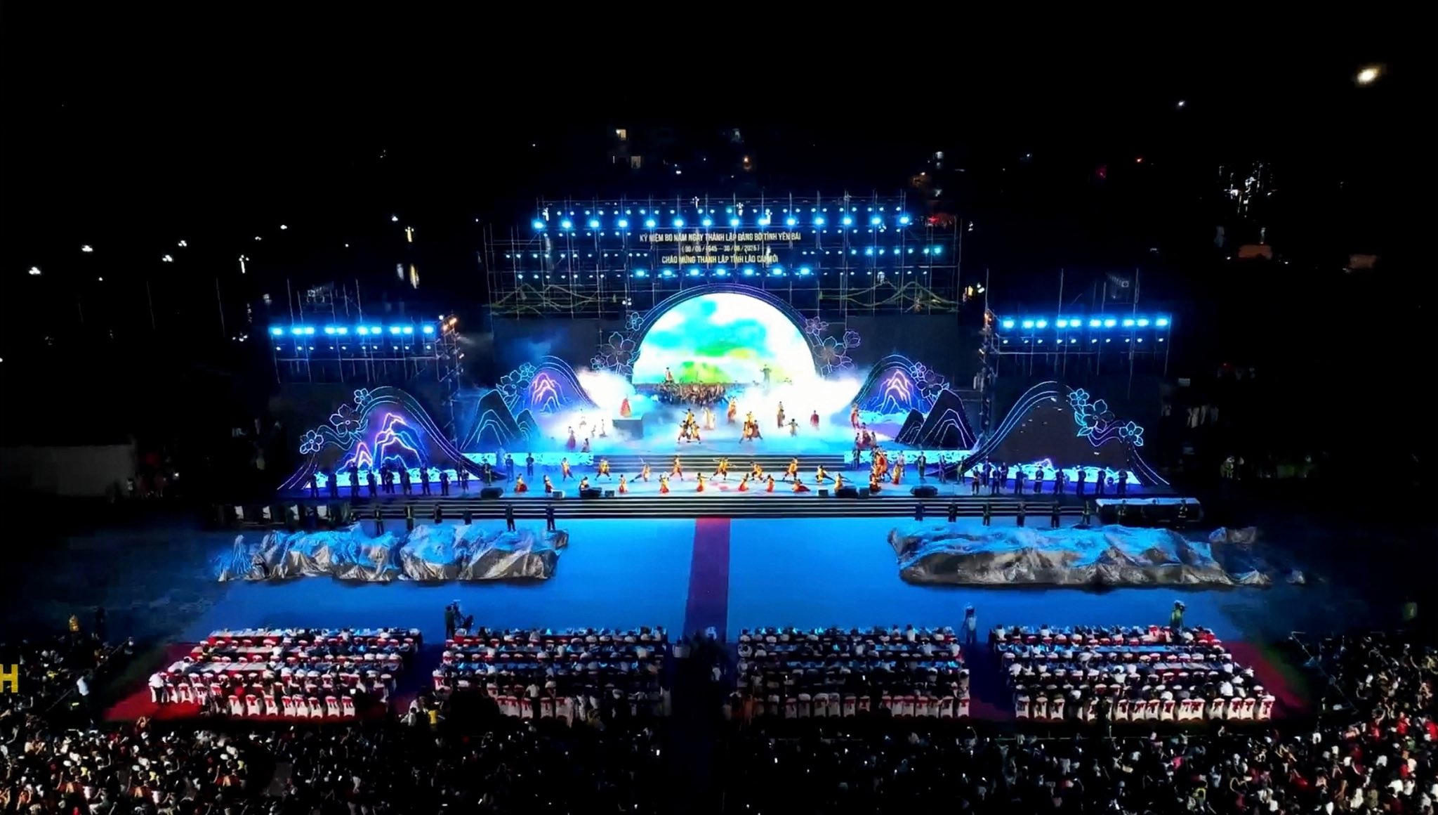 Chương trình có sự góp mặt của NSƯT Đăng Dương, các ca sỹ Trọng Tấn, Đông Hùng, Minh Quân, Thu Thuỷ, Vũ đoàn PL và trên 1.500 diễn viên quần chúng của tỉnh Yên Bái. Ảnh: Nguyên Đức |