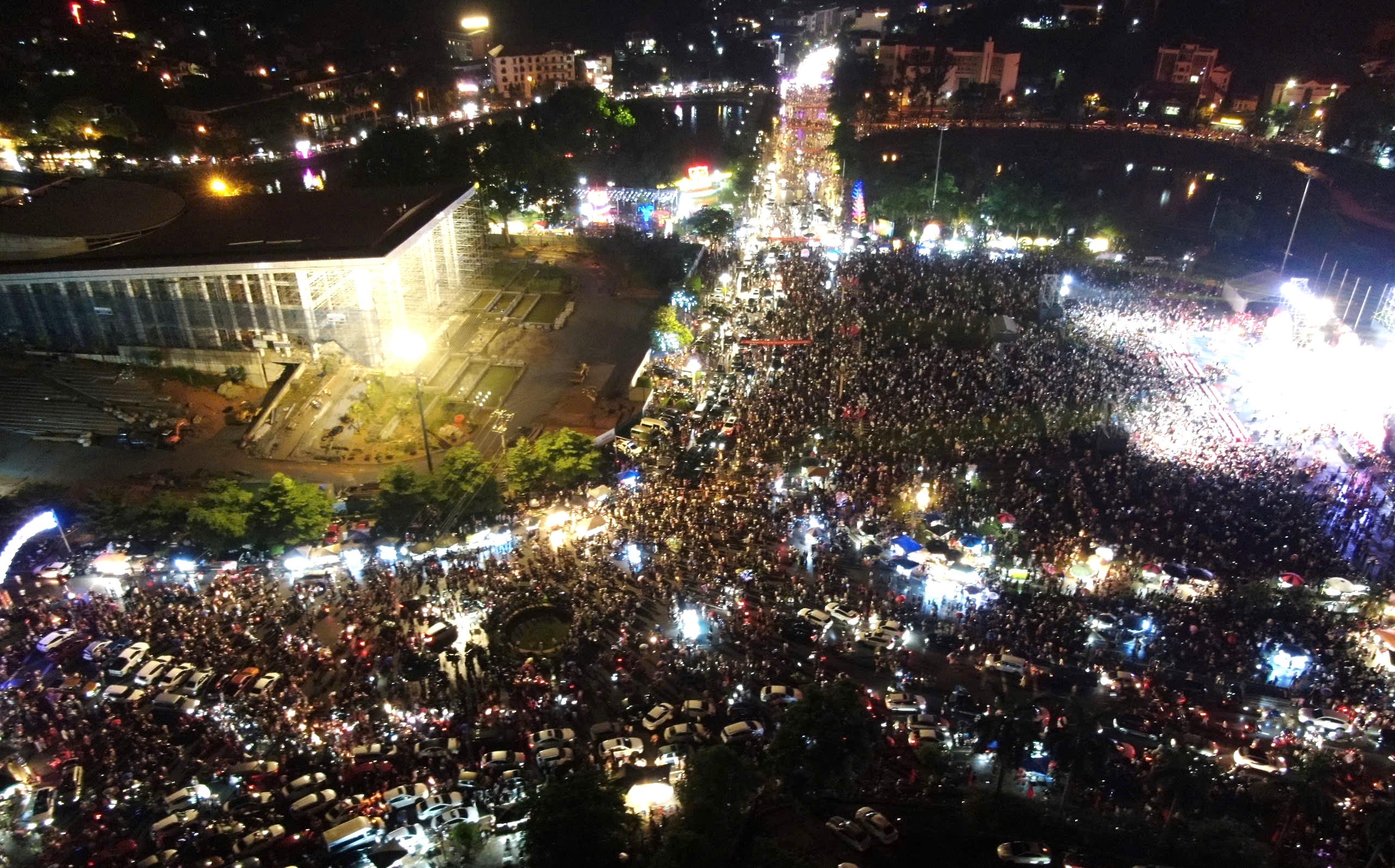 Dòng người di chuyển đông đúc chật cứng khu vực trung tâm quảng trường 19/8 của thành phố Yên Bái trước thời khắc chuyển giao lịch sử. Ảnh: Nguyên Đức |
