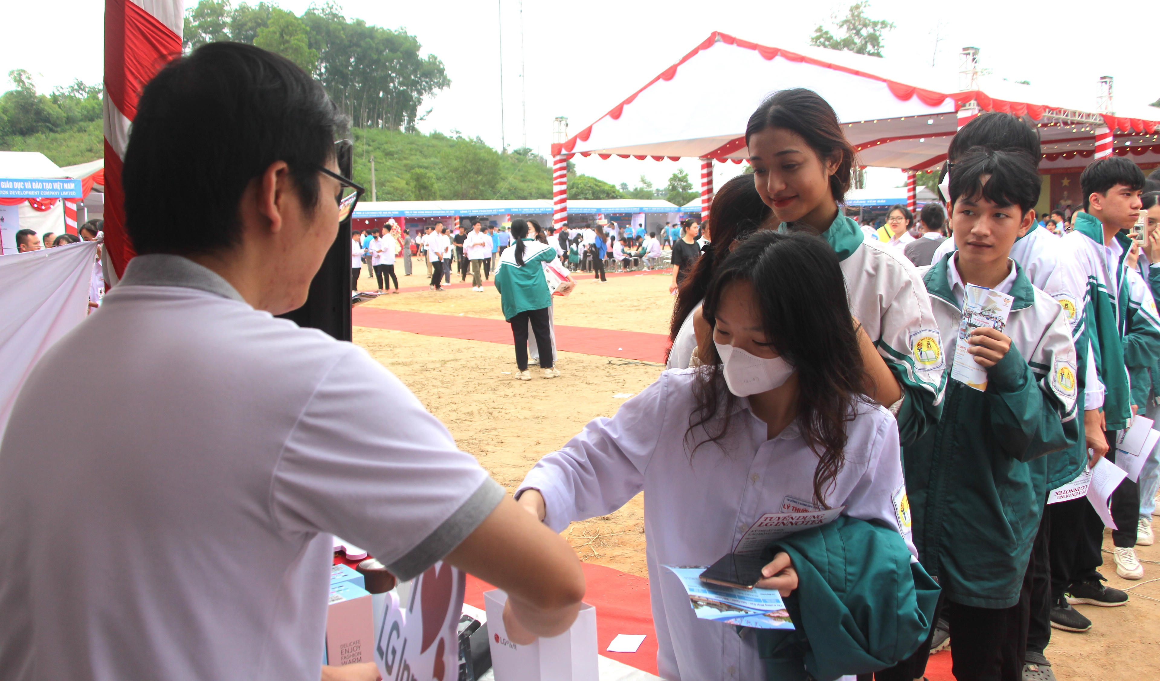 Các bạn trẻ tích cực tìm hiểu về đào tạo nghề cũng như nhu cầu tuyển dụng của doanh nghiệp. Ảnh: Nhật Nguyên. |