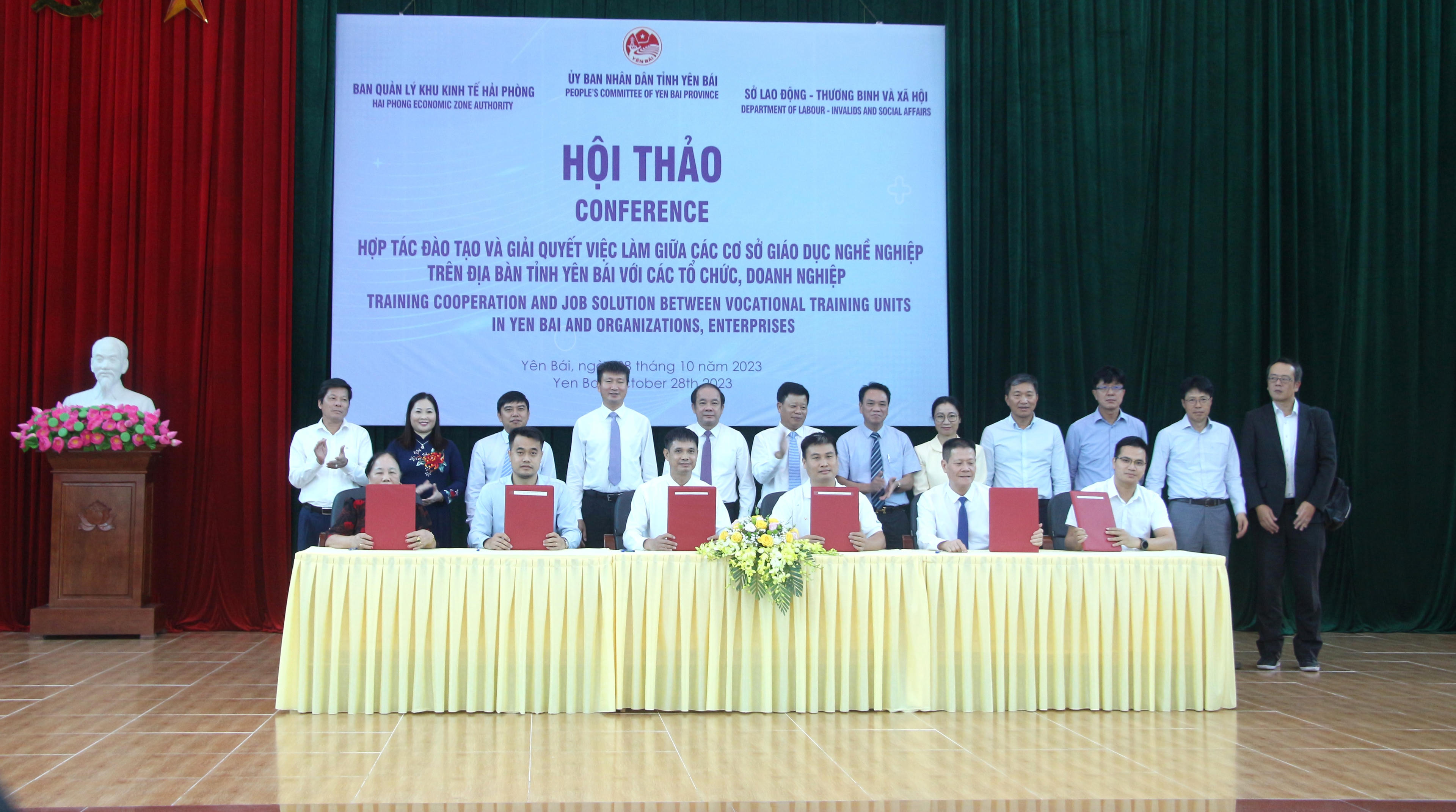 Nhân dịp này, các trường dạy nghề của tỉnh Yên Bái và tổ chức đại diện các doanh nghiệp Hàn Quốc tại Hải Phòng (KOCHAM), các doanh nghiệp Hàn Quốc và doanh nghiệp, đơn vị trên địa bàn thành phố Hải Phòng, doanh nghiệp trên địa bàn tỉnh Yên Bái đã ký kết thoả thuận hợp tác đào tạo.