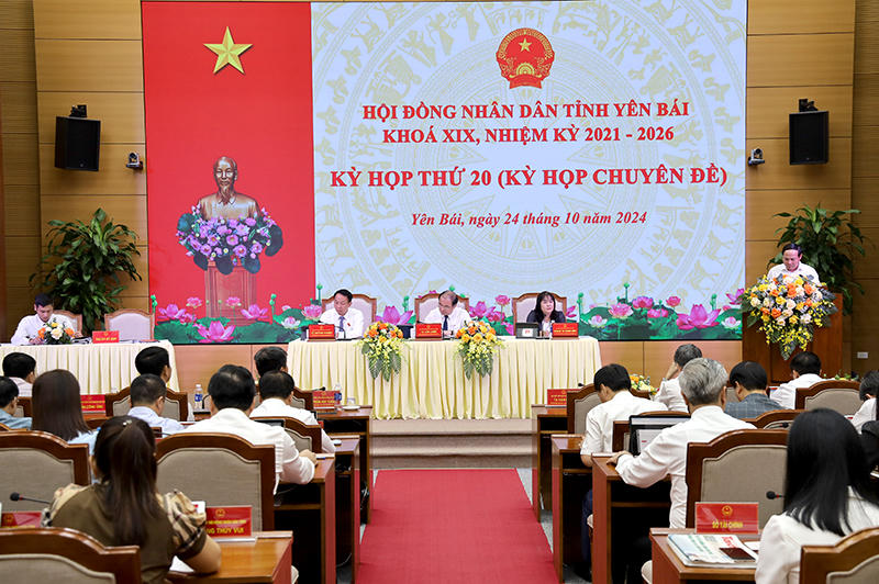 (PLVN) - Trong buổi chiều 24/10, HĐND tỉnh Yên Bái khóa XIX, nhiệm kỳ 2021 - 2026 tổ chức kỳ họp thứ 20 (chuyên đề) thông qua 7 nghị quyết liên quan đến nhiều ngành, lĩnh vực.