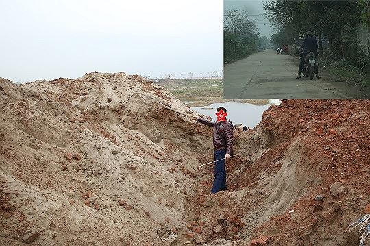 | Phóng viên có mặt tại hiện trường và "cái đuôi" theo phóng viên suốt quá trình tác nghiệp tại khu vực thôn Tam Kỳ 1, xã Đại Tự (ảnh nhỏ) |