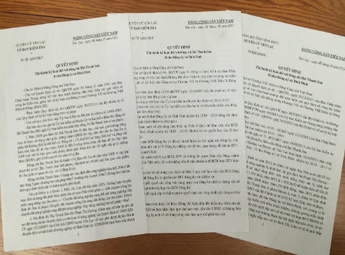 | Các quyết định kỷ luật đối với ông Bùi Thanh Sơn |