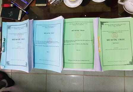 Đến thời điểm đóng thầu, mở thầu thì có tổng cộng 4 nhà thầu đến nộp hồ sơ dự thầu (HSDT) gồm: Công ty CPXD Việt Hùng, Công ty CPXL và TM Phú Mỹ, Công ty TNHH xây lắp Thiên Phúc, Doanh nghiệp tư nhân xây dựng Thanh Thơ.