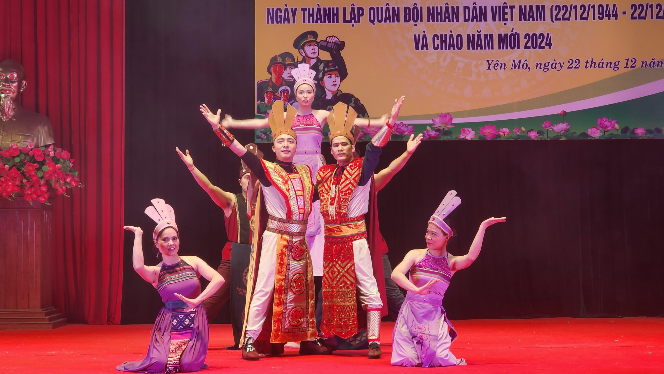 (PLVN) - Tối ngày 22/12, tại Nhà văn hóa Trung tâm huyện Yên Mô tỉnh Ninh Bình, Báo Pháp Luật Việt Nam phối hợp cùng nhà hát cải lương Việt Nam tổ chức chương trình nghệ thuật chào mừng kỷ niệm 79 năm Ngày thành lập quân đội nhân dân Việt Nam (22/12/1944 - 22/12/2023) và chào mừng năm mới 2024.