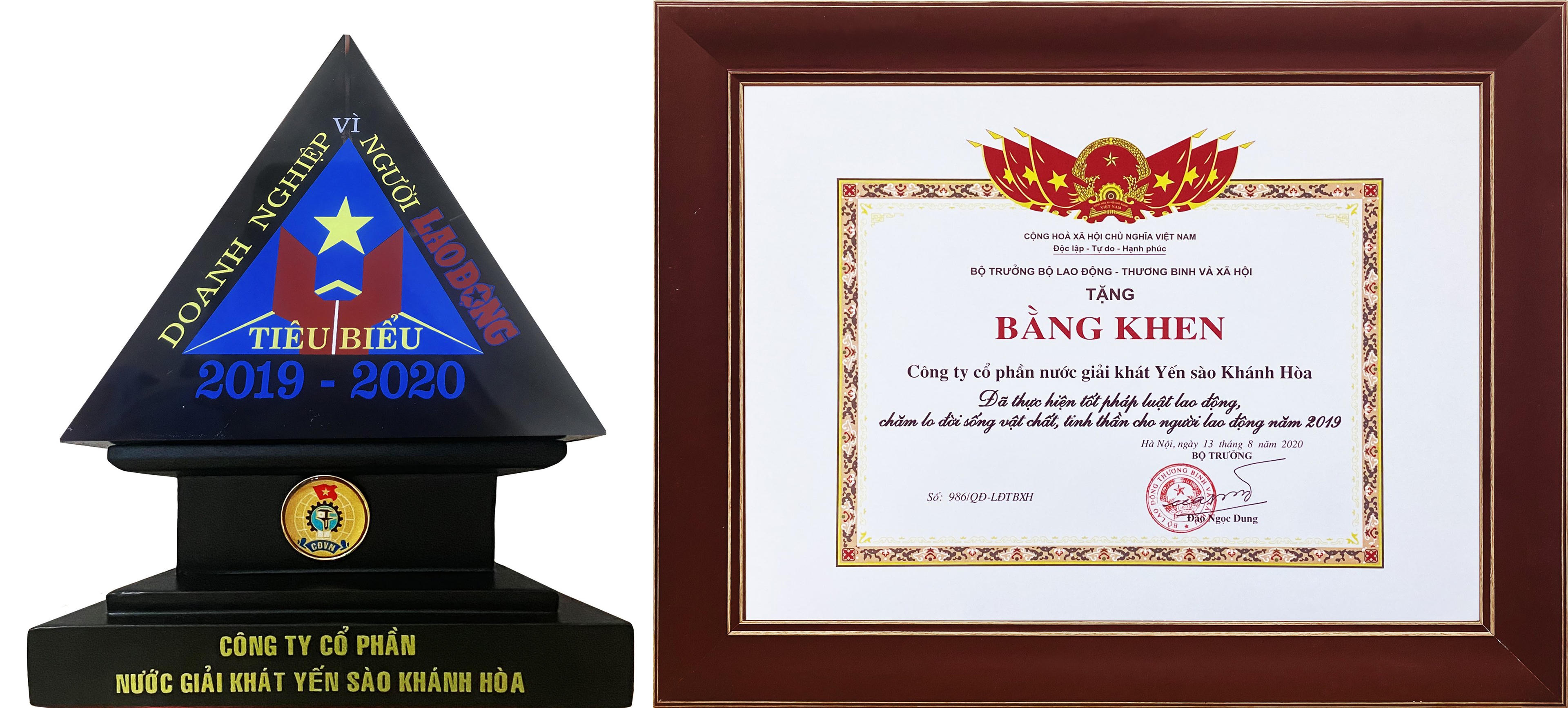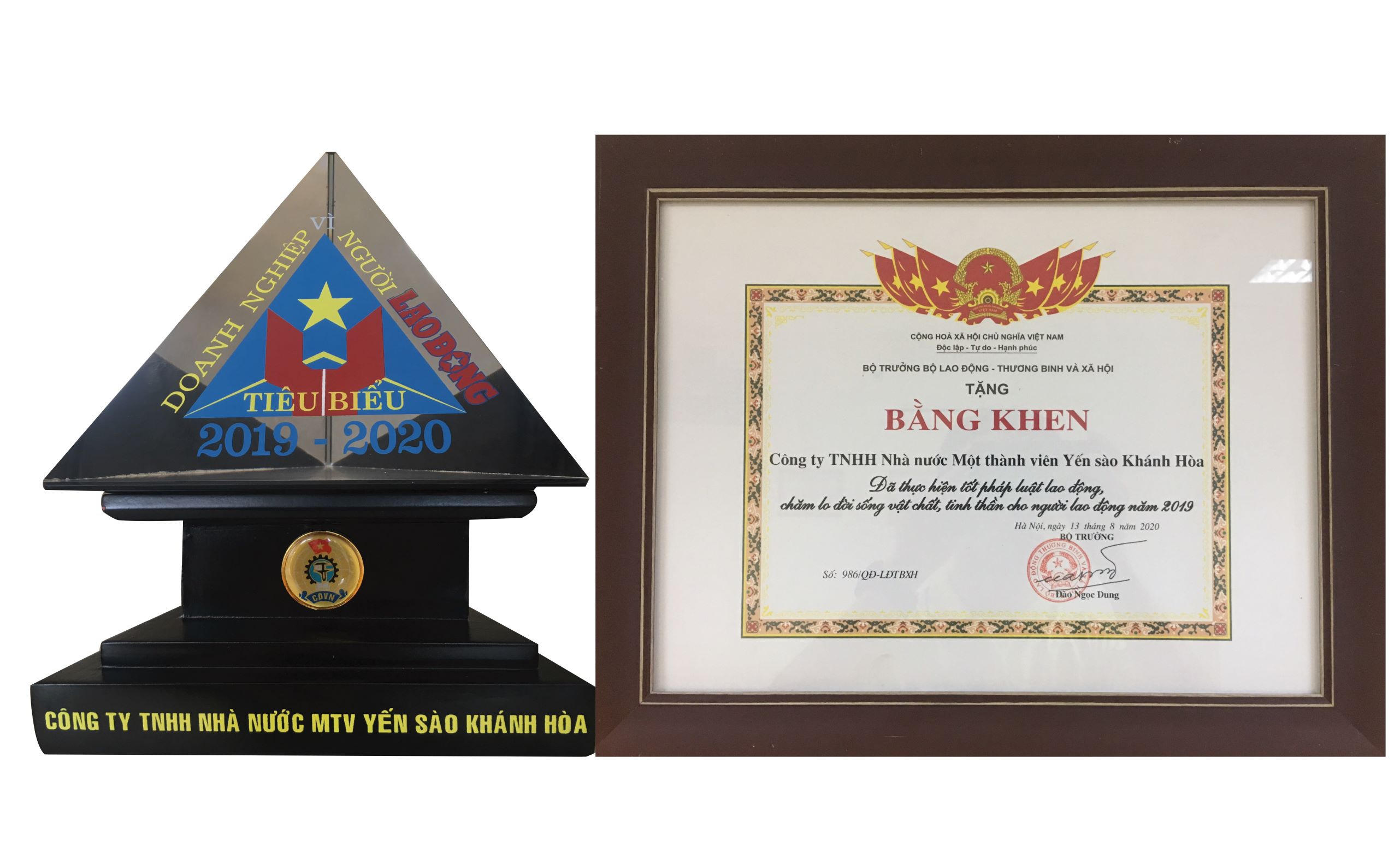 Nhân dịp này, Công ty TNHH Nhà nước MTV Yến sào Khánh Hòa và Công ty CP NGK Yến sào Khánh Hòa rất tự hào được vinh danh lần thứ hai nằm trong “Top 50 Doanh nghiệp tiêu biểu vì Người lao động” và nhận Bằng khen “Đơn vị thực hiện tốt pháp luật lao động, chăm lo đời sống, vật chất, tinh thần cho Người lao động” của Bộ Lao động Thương binh và Xã hội”.