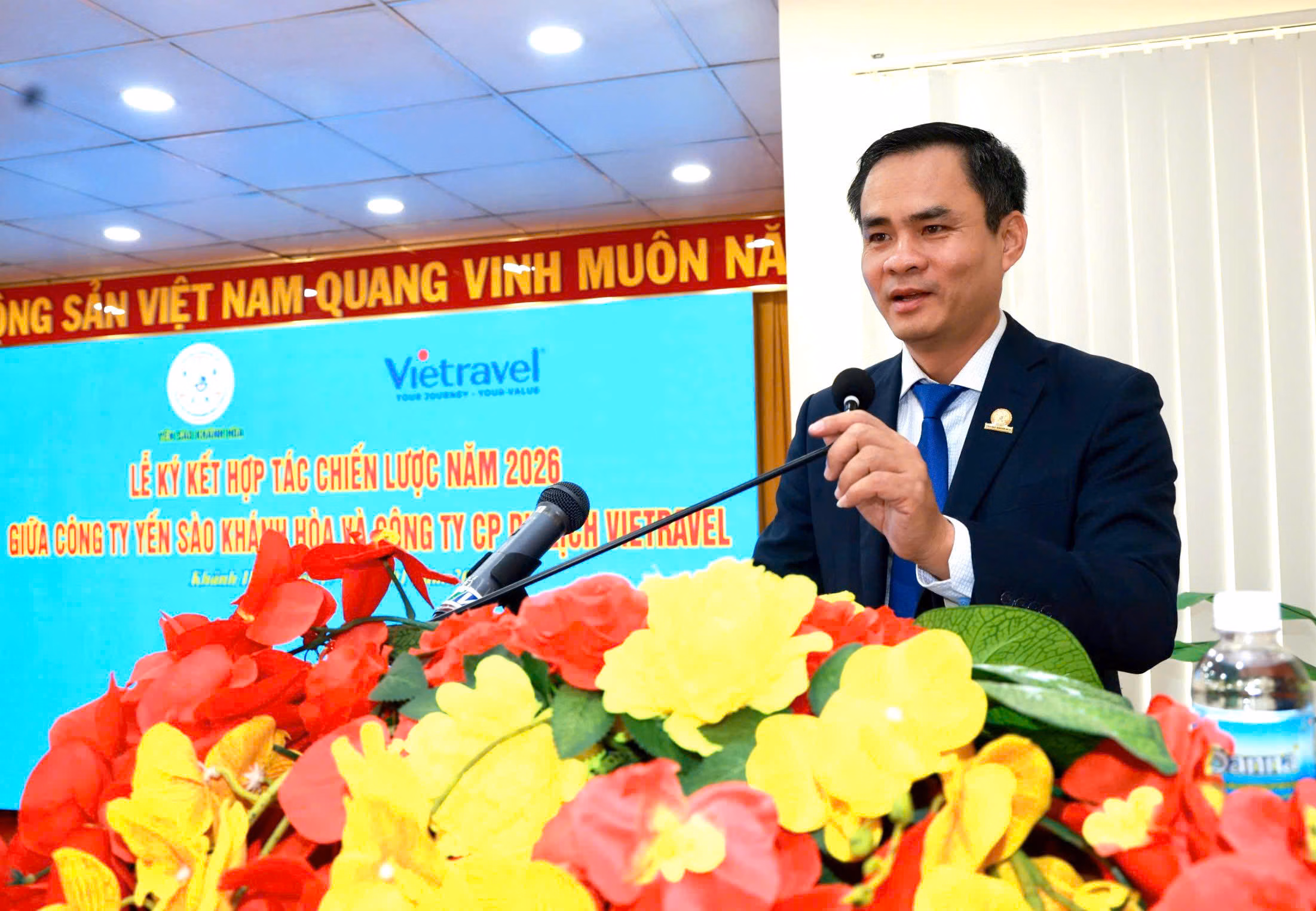 Phát biểu tại lễ ký kết, ông Nguyễn Thanh Hải – Tổng Giám đốc Công ty Yến sào Khánh Hòa cho biết, việc hợp tác với Vietravel được kỳ vọng sẽ mở rộng không gian phát triển cho sản phẩm yến sào, đồng thời góp phần nâng cao trải nghiệm của du khách khi đến Khánh Hòa.
