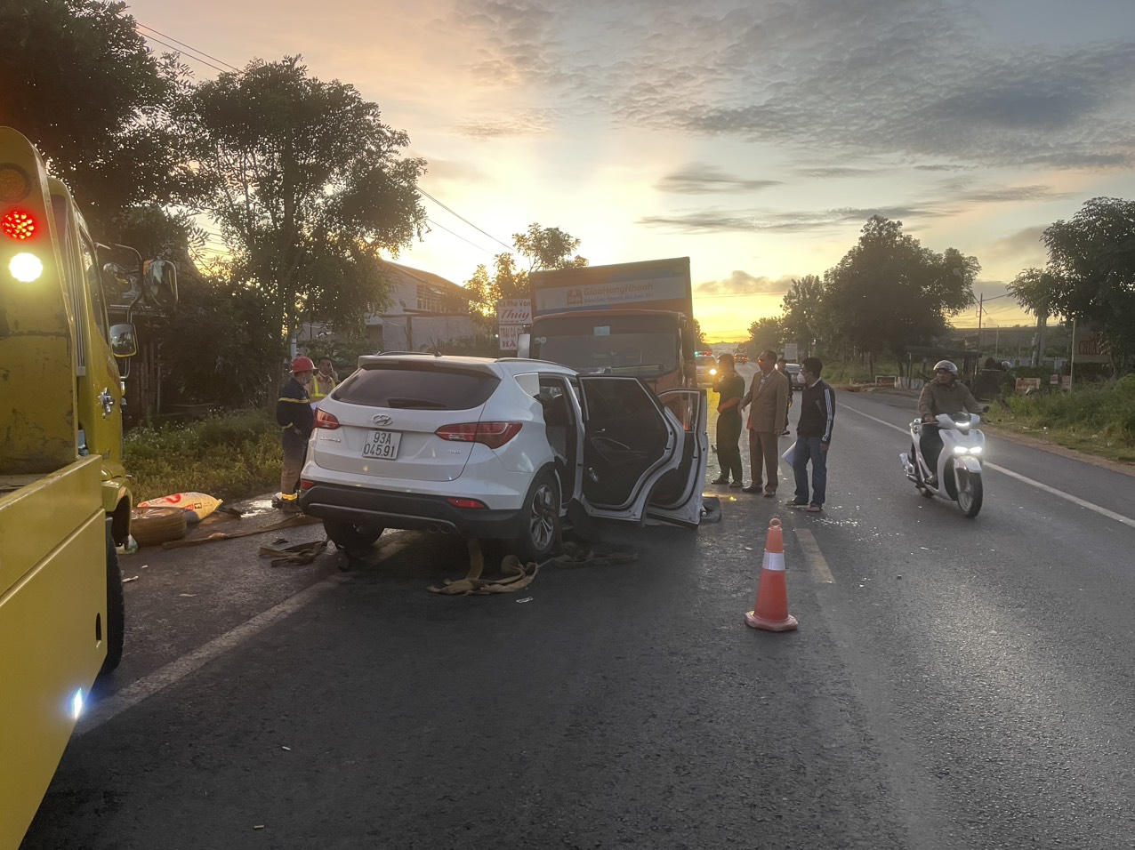 Đến Km 184 + 450, Quốc lộ 20, thuộc địa phận thôn Hiệp Thuận, xã Ninh Gia, huyện Đức Trọng, ô tô tải va chạm ô tô con biển kiểm soát 93A-045... do ông T.V.Q (SN 1981 quê Bình Phước) điều khiển theo hướng ngược lại. Trên xe ô tô con có 6 người. Hậu quả, 3 người trên ô tô con tử vong tại hiện trường, 4 người còn lại (gồm tài xế xe tải) được đưa đi cấp cứu tại trung tâm y tế huyện Đức Trọng và chuyển lên bệnh viện Đa khoa tỉnh Lâm Đồng điều trị.