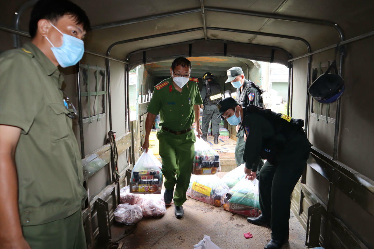 Bằng các phương tiện có sẵn của lực lượng Công an tỉnh và các huyện, thành phố. Nhu yếu phẩm sẽ được vận chuyển từ nơi phân phối về địa điểm tập kết đóng gói thành các suất quà “an sinh xã hội” đến các xã, phường, thị trấn, đồng thời phối hợp cùng các ban, ngành, đoàn thể địa phương để trao trực tiếp cho người dân.