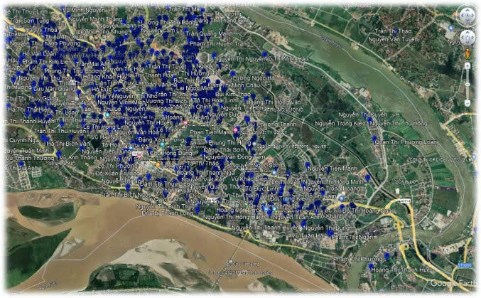 Bản đồ vệ tinh định vị vị trí cán bộ y tế Bệnh viện tại các khu dân cư trên địa bàn thành phố Việt Trì. Ảnh: BV Đa khoa tỉnh Phú Thọ |